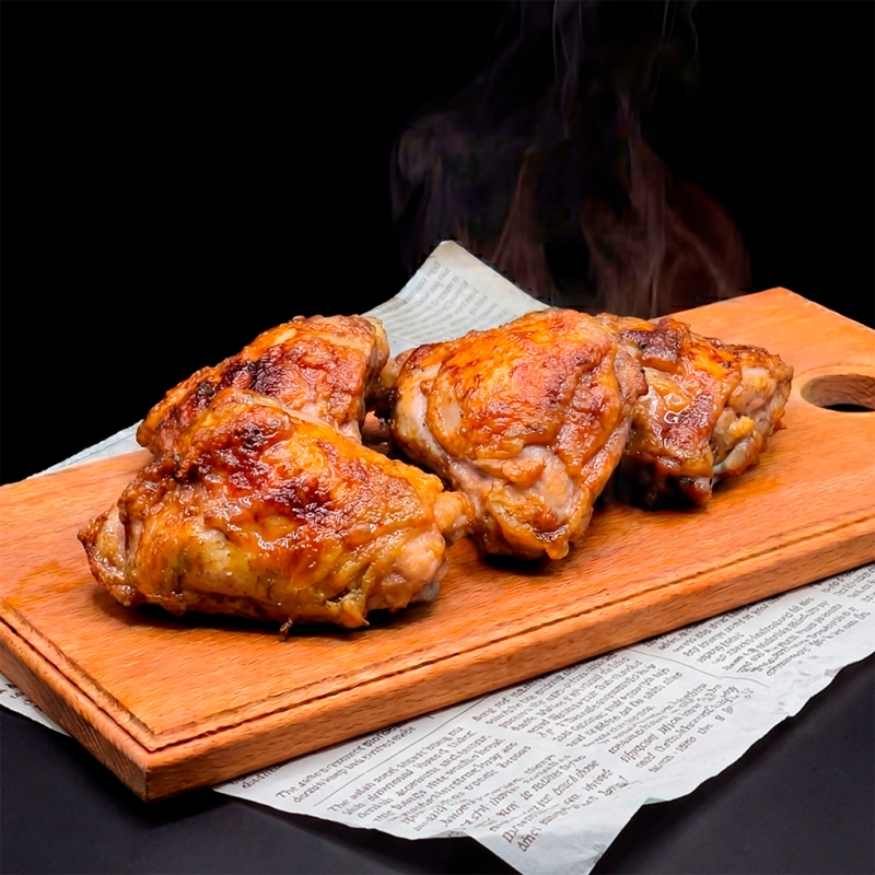 Сочное куриное бедро — мягкое, тёплое, с насыщенным вкусом и лёгкой дымкой костра. Просто и по-настоящему вкусно.