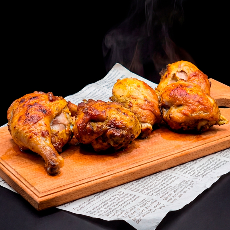 Сочное куриное бедро — мягкое, тёплое, с насыщенным вкусом и лёгкой дымкой костра. Просто и по-настоящему вкусно.